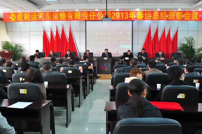 雄壯的國(guó)歌聲開啟了先進(jìn)表彰會(huì)的序幕。首先,公司董事長(zhǎng)兼總經(jīng)理、春運(yùn)領(lǐng)導(dǎo)小組組長(zhǎng)彭瑞華做了2013年春運(yùn)工作總結(jié)。針對(duì)今年春運(yùn)客流量大,疏運(yùn)任務(wù)繁重,熱別是客流高峰期日運(yùn)力緊張等情況,公司提前成立了春運(yùn)工作領(lǐng)導(dǎo)小組形成了指揮靈活、聯(lián)絡(luò)暢通的春運(yùn)組織網(wǎng)絡(luò),為春運(yùn)組織的平穩(wěn)有序提供了堅(jiān)實(shí)的管理基礎(chǔ)。春運(yùn)期間,公司采取多種措施狠抓營(yíng)收工作,強(qiáng)化了現(xiàn)場(chǎng)掌握及協(xié)調(diào),強(qiáng)化了運(yùn)力組織及調(diào)度,加強(qiáng)了站場(chǎng)秩序維護(hù)和管理,加大了對(duì)車輛私自加班的稽查力度。